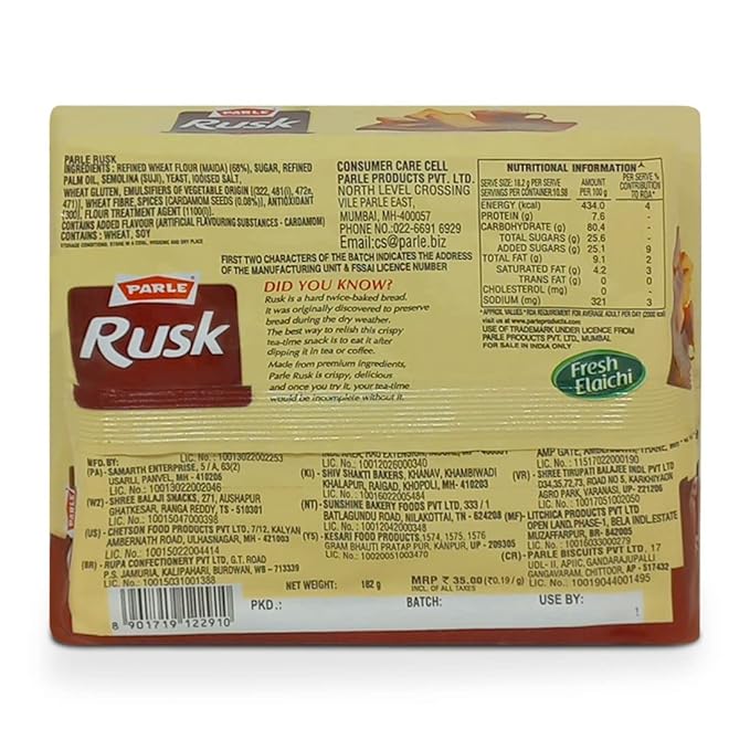 Parle-G Rusk is a crispy, golden-baked toast made from the goodness of wheat and milk. It is double-baked to perfection to give a crunchy texture and delicious taste, making it the ideal companion for tea or coffee.